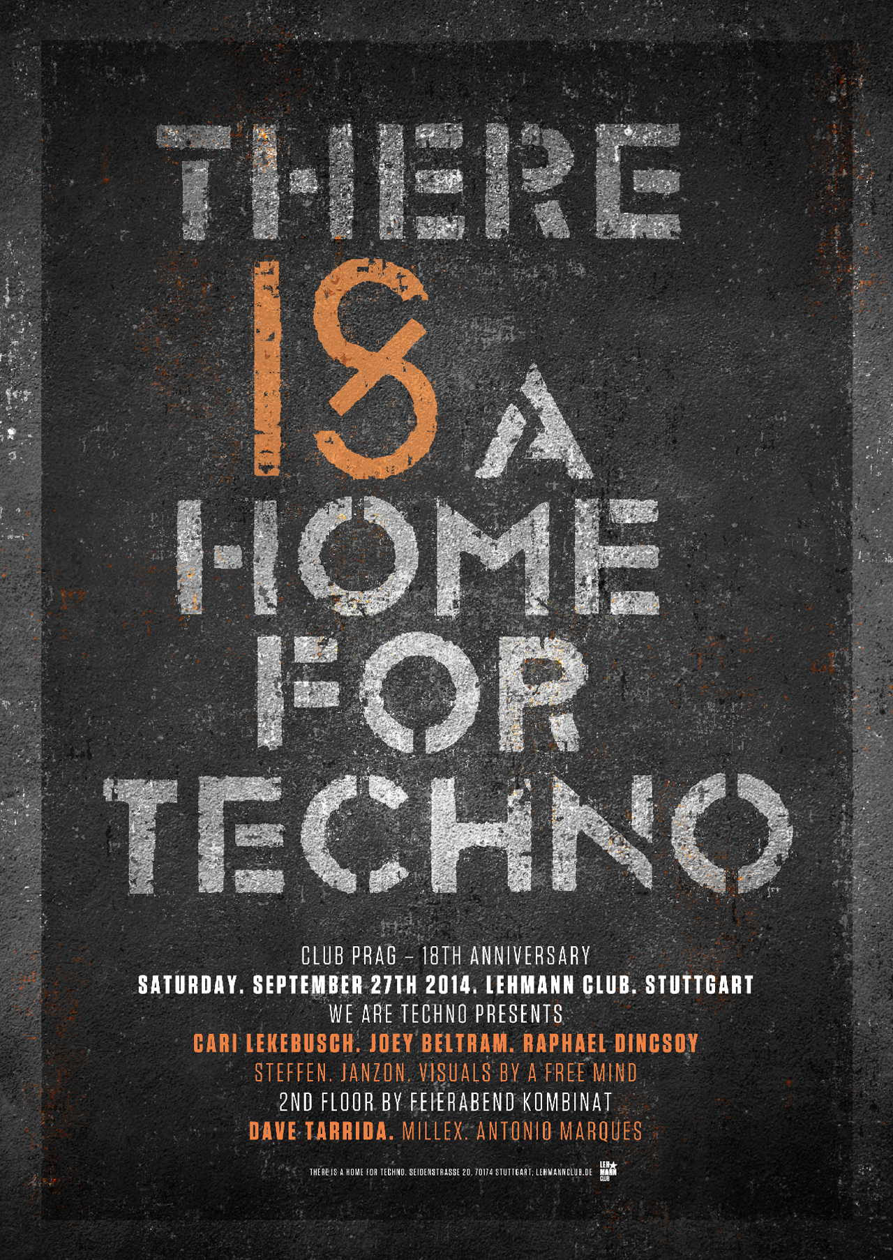 2014. Event Artwork. Club Prag 18. Anniversary. 27.9.2014 : Lehmann Club.Stuttgart. Germany