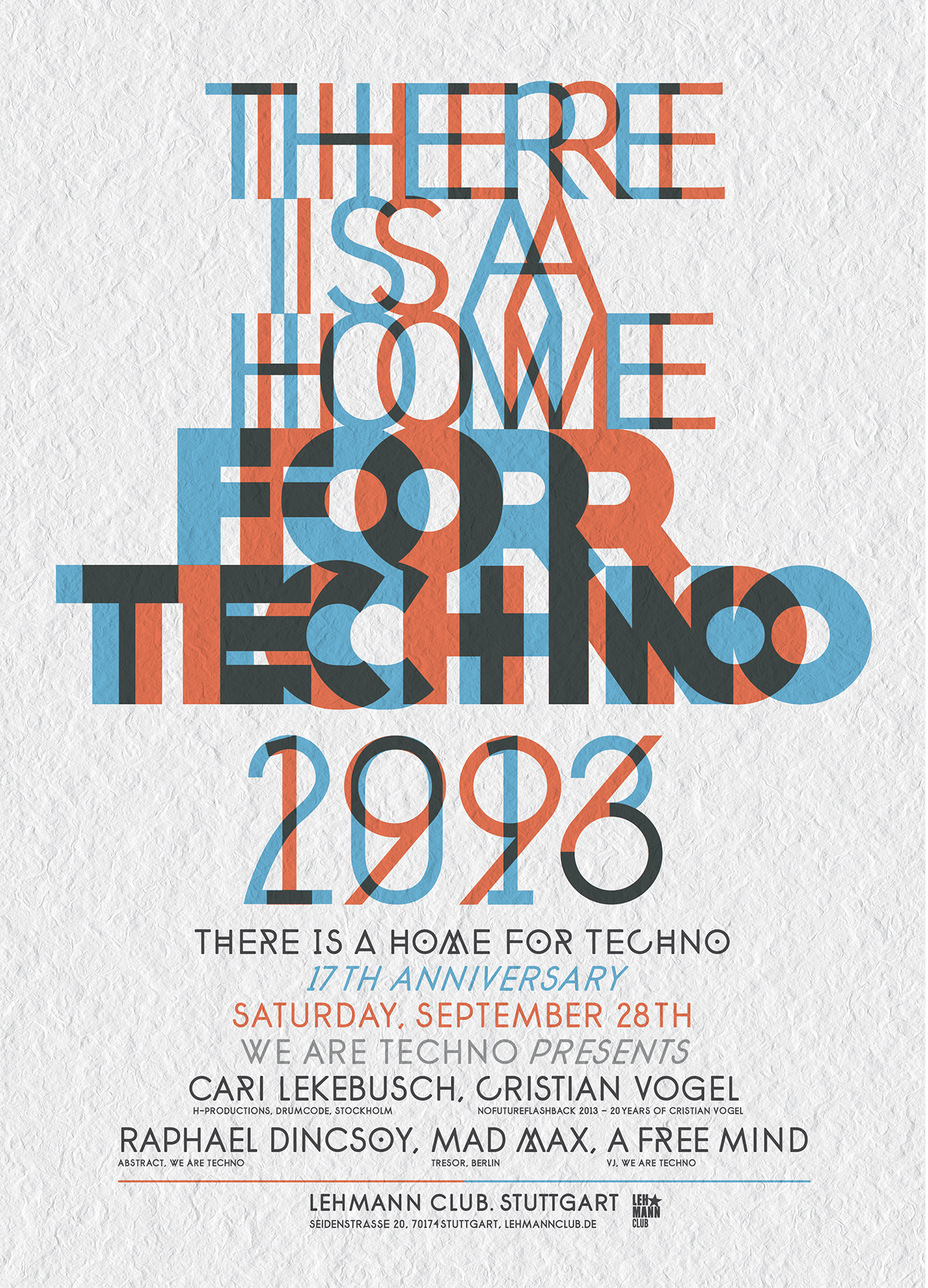 2013. Print. Event Artwork. There is a Home for Techno – 17th Anniversary